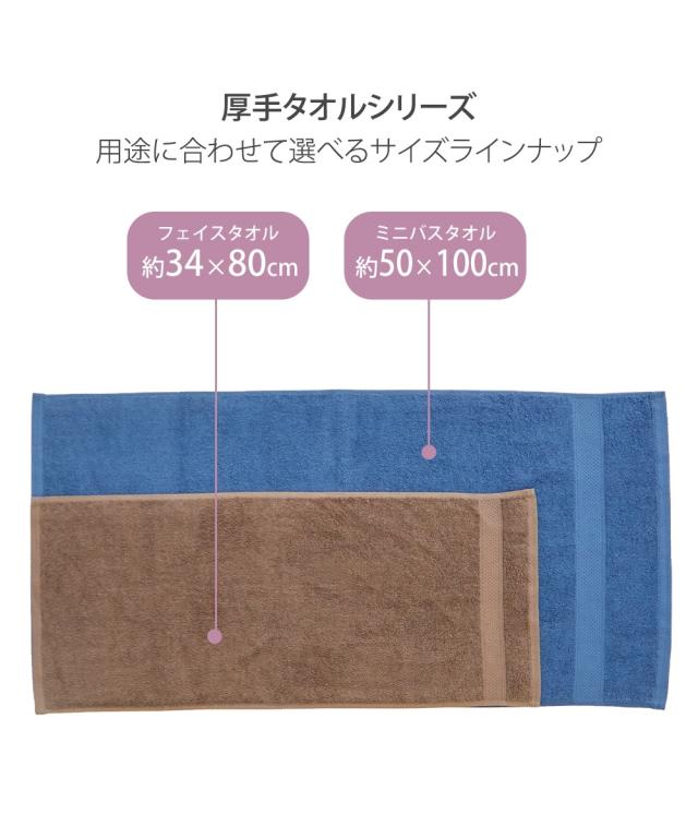 ボリュームリッチな厚手ミニバスタオル同色2枚セット