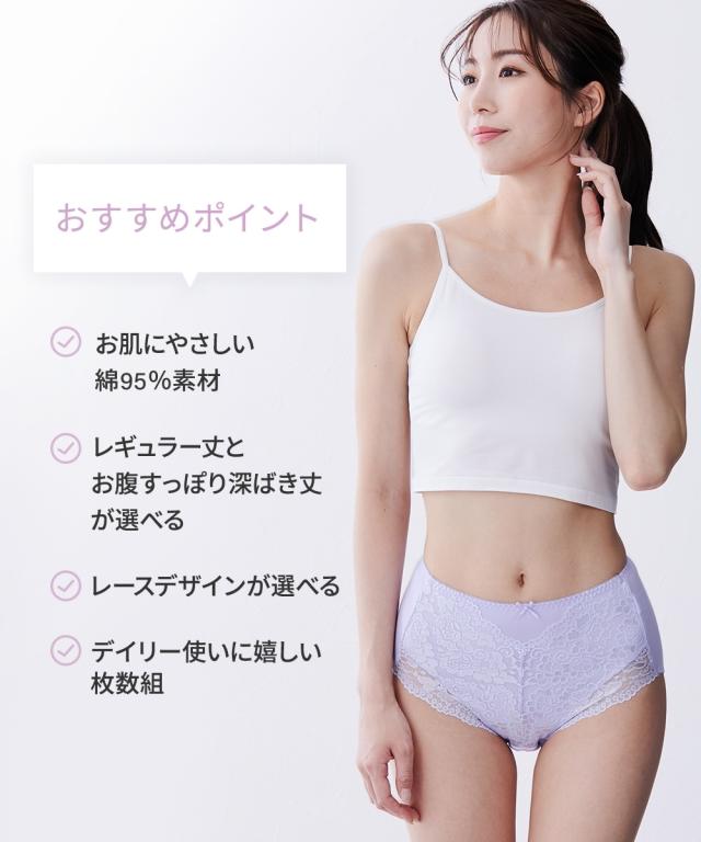 [keyword] レディース 下着 ランジェリー インナー 大きいサイズ ぽっちゃり ふくよか プラスサイズ ラージ ファッション 標準サイズ 普通サイズ ゆったりサイズ ハイウエスト すっぽり 深め 深ばき丈 深履き丈 レギュラー丈 レース付き レーシー ストレッチ 伸びる 綿混 コットン混 綿素材 綿 コットン お買い得セット まとめ買い セット お得 春 夏 秋 冬 [comment] ストレッチ素材に進化! 綿たっぷり大人のレーシー深ばきショーツ こだわりポイント ・シンプルなのに華やかな単色レース使いでお手持ちのブラにも合わせやすい。 ・タテヨコに伸びる2WAYストレッチ素材で快適フィット。綿たっぷり95%で肌ざわりもやさしい。 ※商品の色移りを防止するために個包装を行っている場合がございます。個包装はプラスチック削減のため一部の色のみに使用しています。