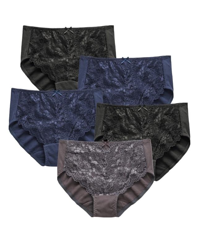 ショーツ スタンダード 大きいサイズ レディース デザイン はきこみ丈が選べる 綿混 ストレッチ レーシー 5枚組 4L/5L/6L