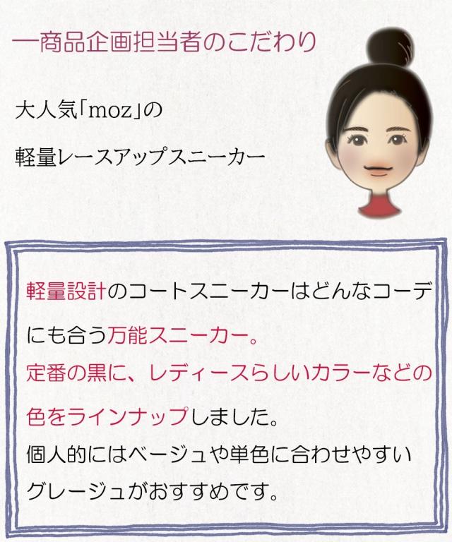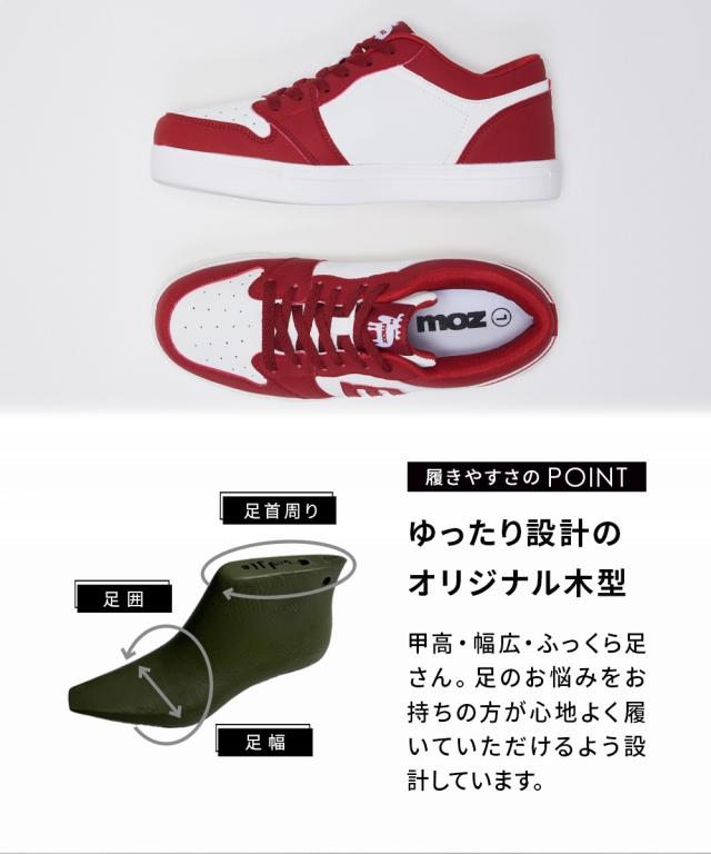 [keyword] 靴 レディース シューズ バッグ アクセサリー 大きいサイズ ぽっちゃり ふくよか プラスサイズ ラージ ファッション ローヒール ぺたんこ フラット 楽ちん 疲れにくい 低い かかと 4E 幅広 合成皮革 素材 合皮 生地 秋 [comment] サイドの「m」ロゴがポイントのmozスニーカーに新作ができました!!軽量設計約210gです。ベーシックなコートスニーカーはどんなコーデにも合う万能スニーカー。