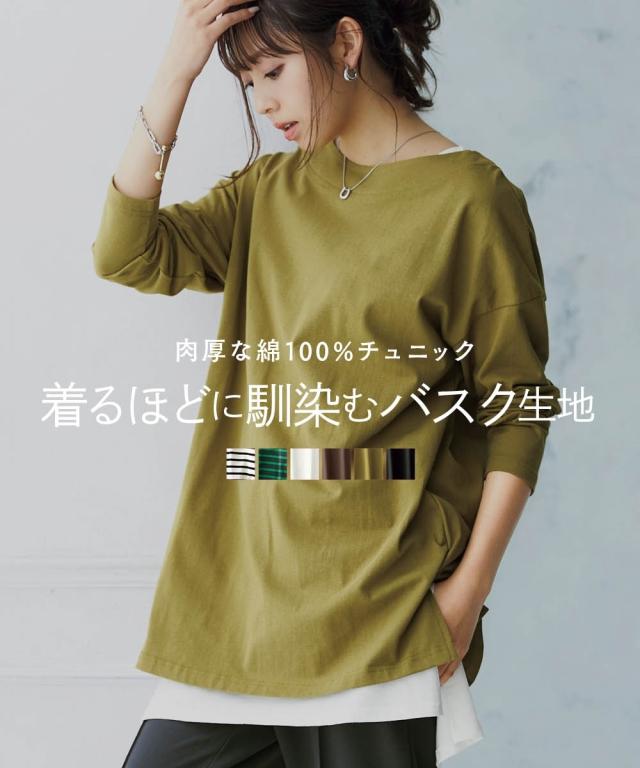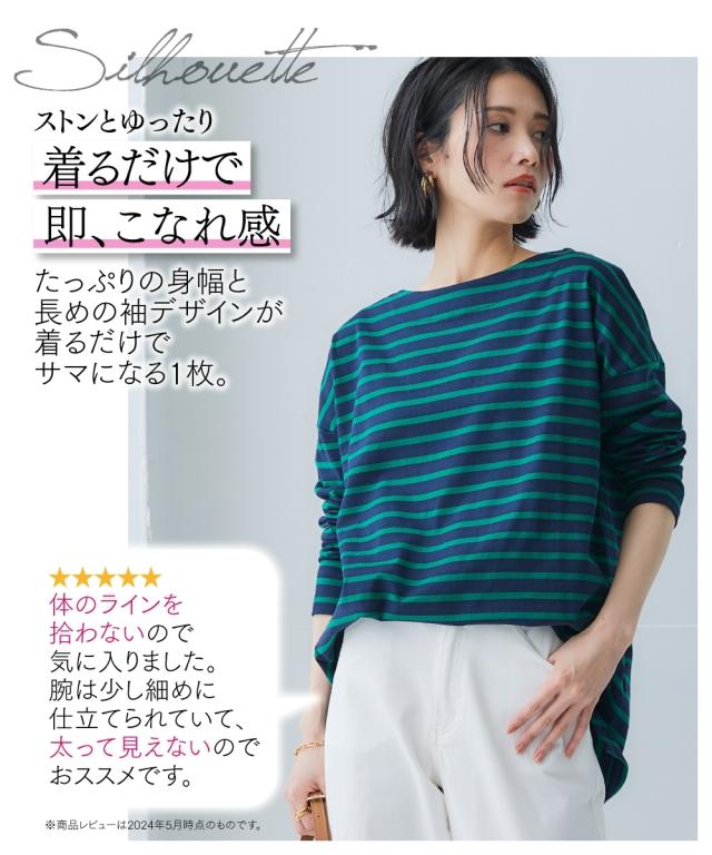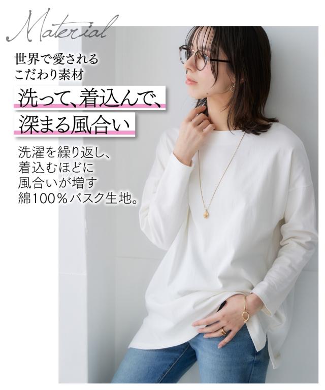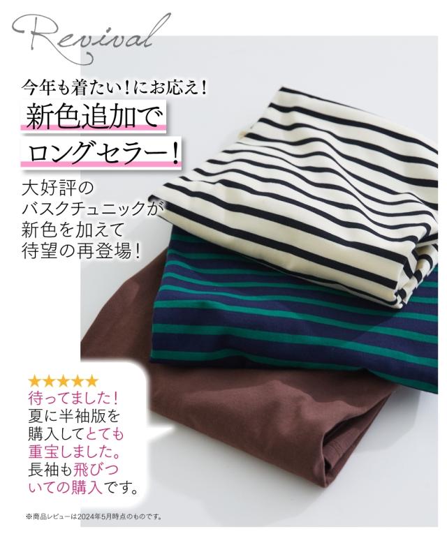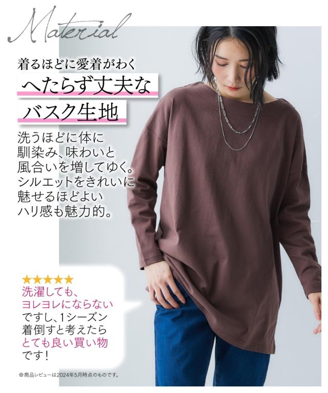 Tシャツ カットソー レディース 綿100% バスクオーバーサイズ 長袖 チュニック UVカット S〜M/L〜LL ニッセン nissen