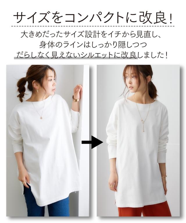 サイズ感を1から見直し、体のラインを隠しつつだらしなく見えないシルエットに改良しました。