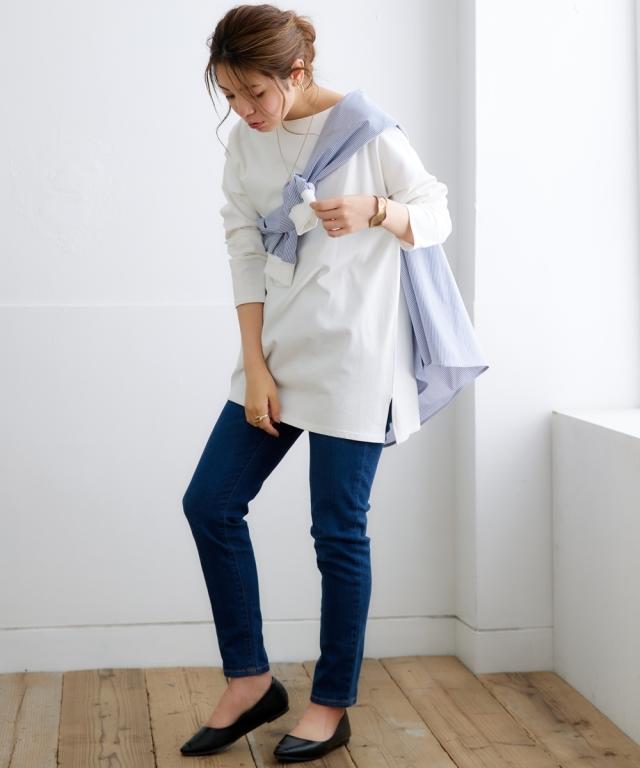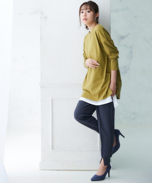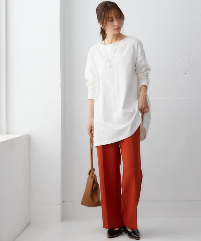 チュニック丈なので、トレンドのリブパンツやテーパード・スキニーパンツと好相性。