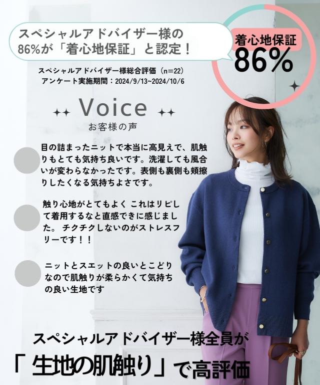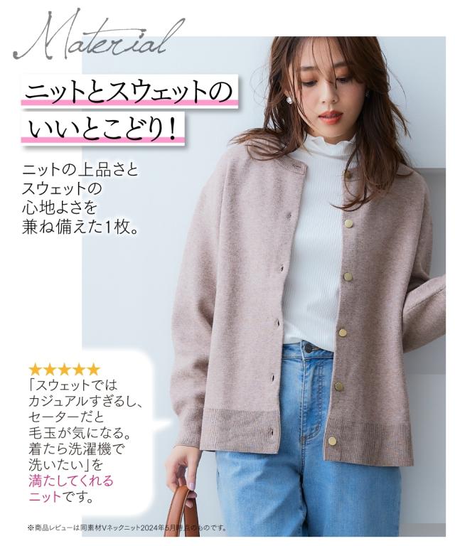 ニットの「上品で肌ざわりのよい質感」とスウェットの「着心地のよい伸縮性」をミックスした素材。