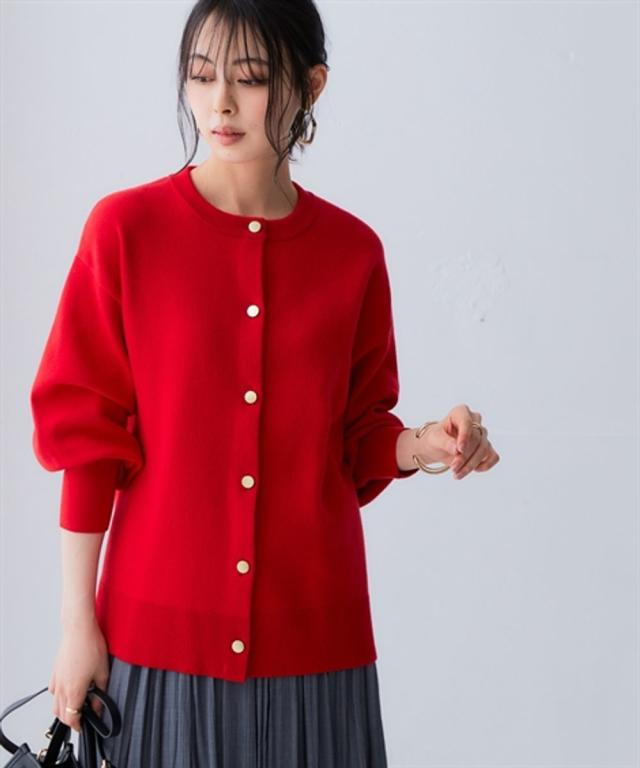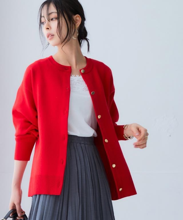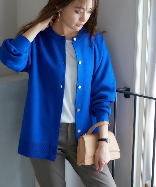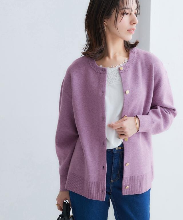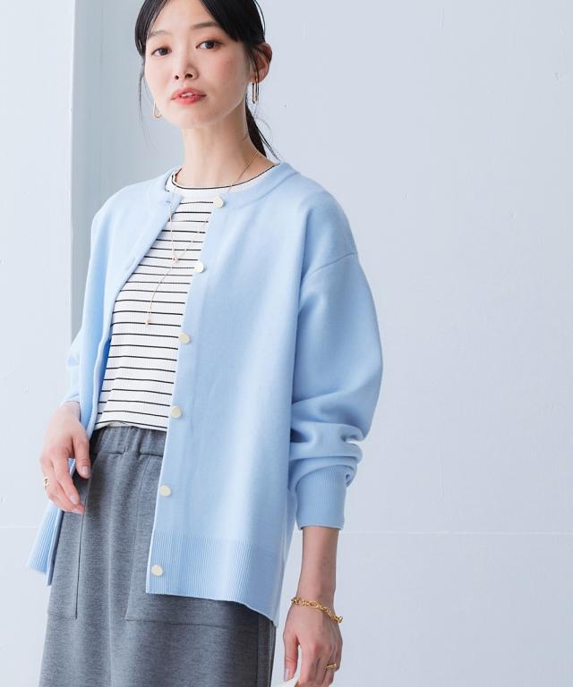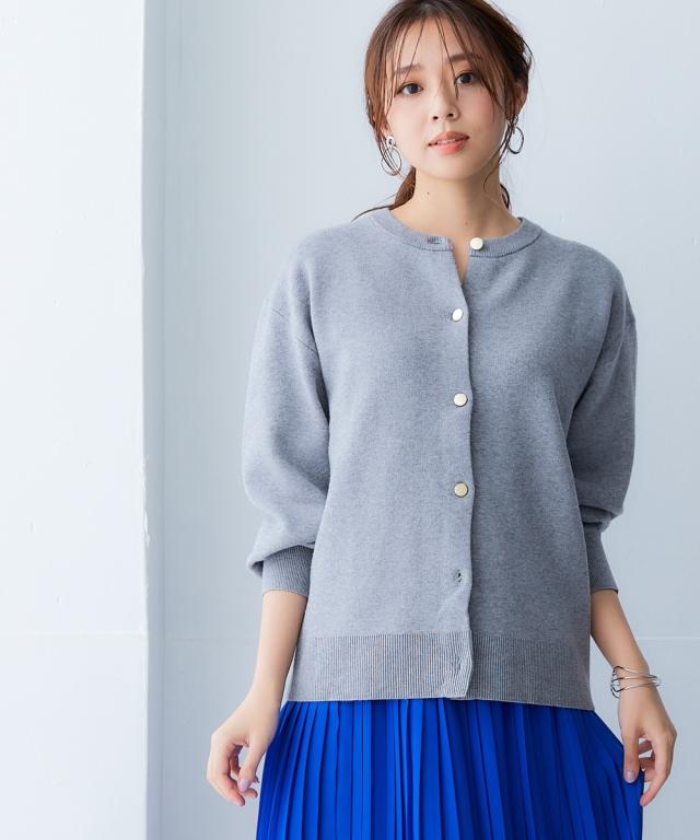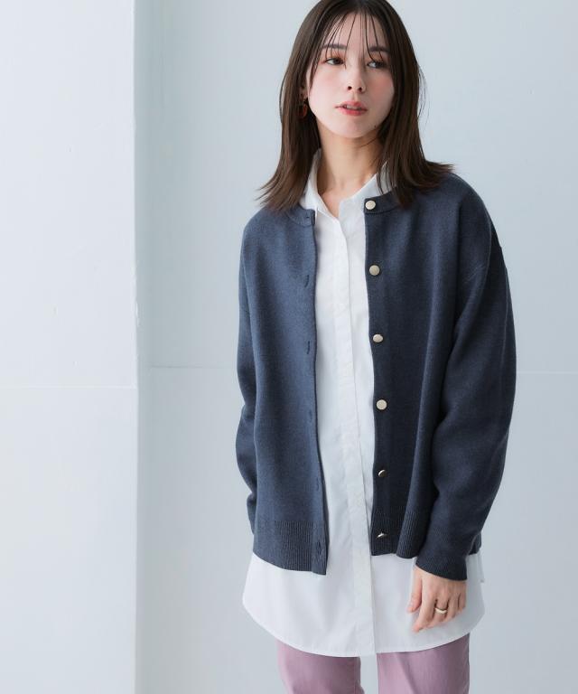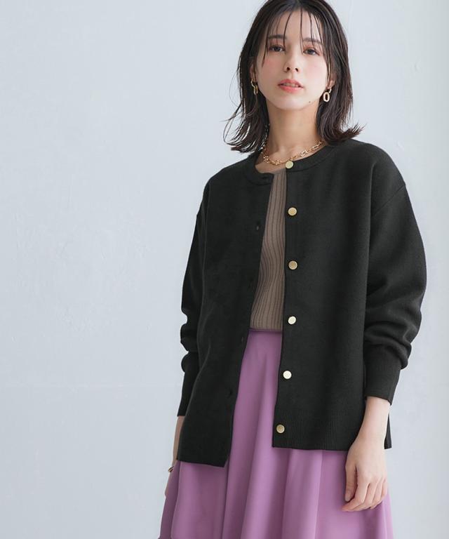 なめらかな肌触りと上品な金ボタンが高見えするニットカーディガン。