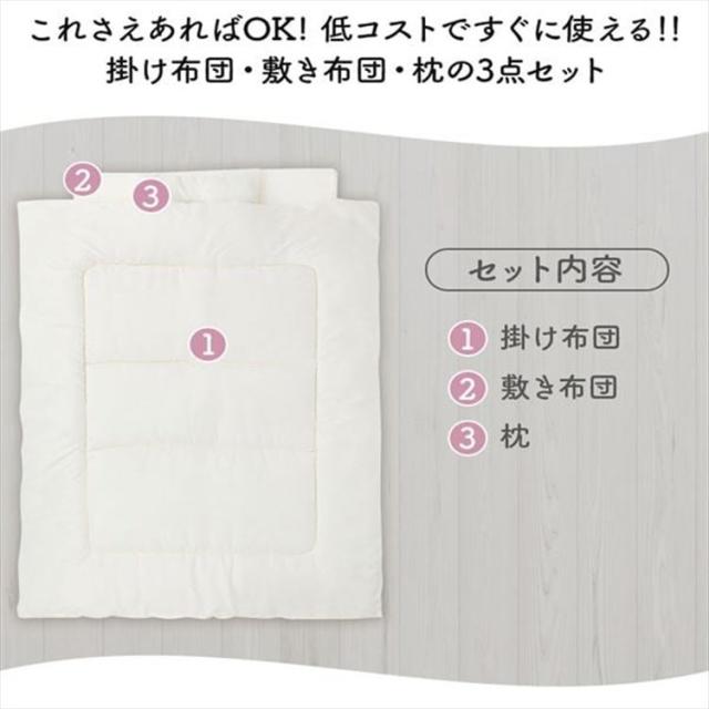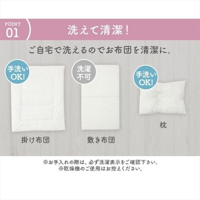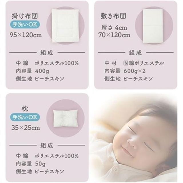 ベビー用の掛け布団・敷き布団・枕の3点セットです。