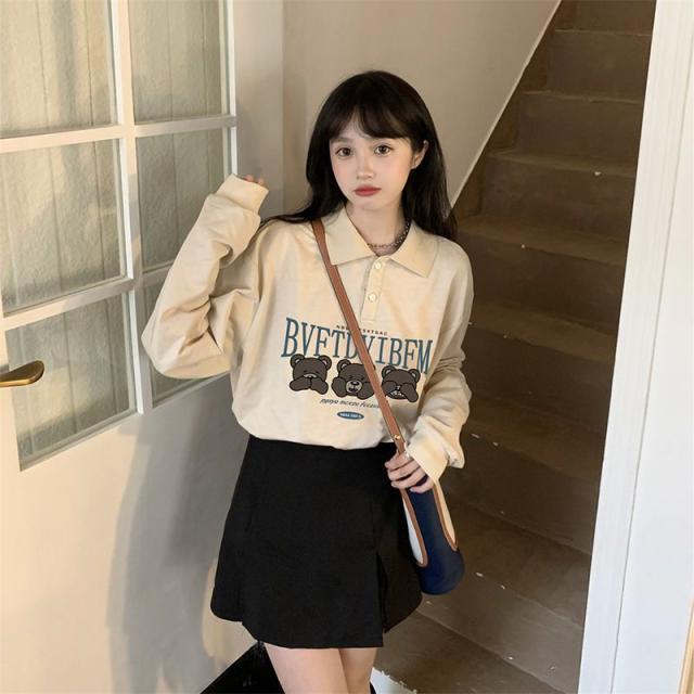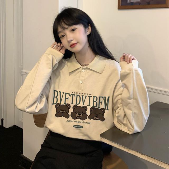 レディース 長袖 ポロシャツ トレーナー トップス 秋冬 カジュアル アメカジ くまさん