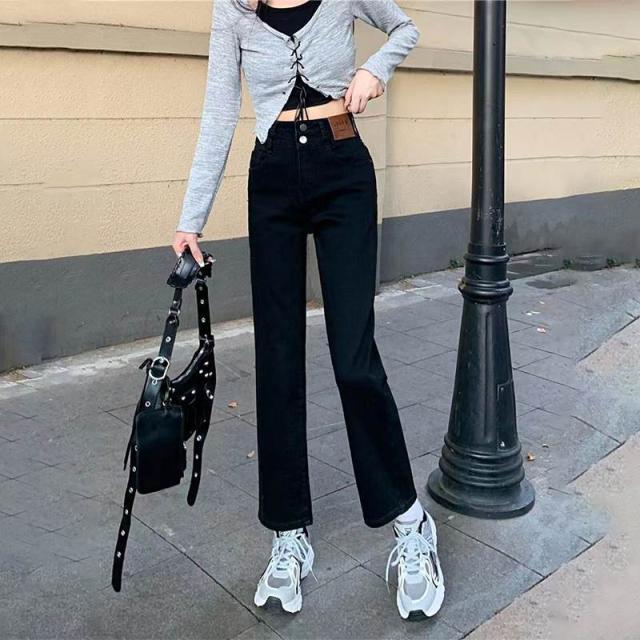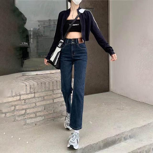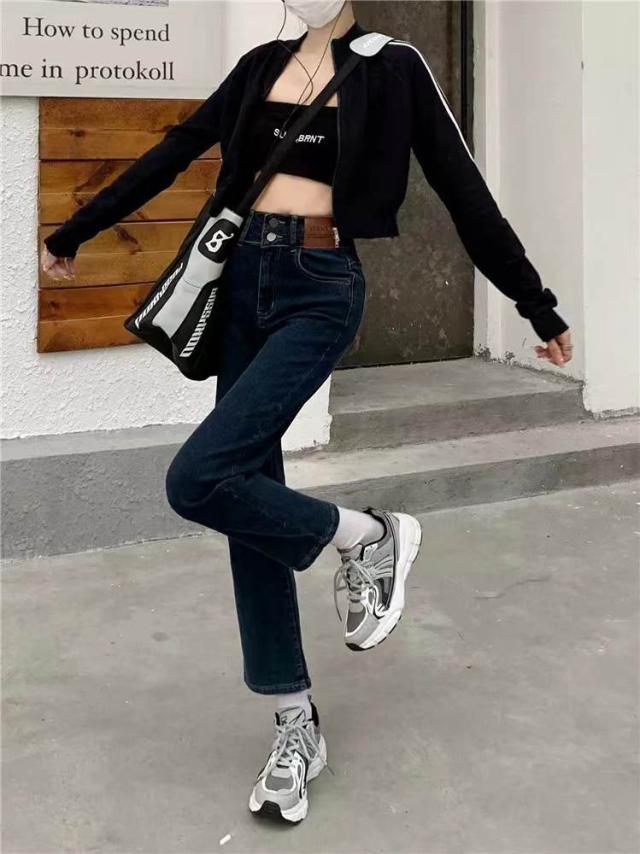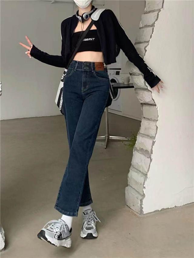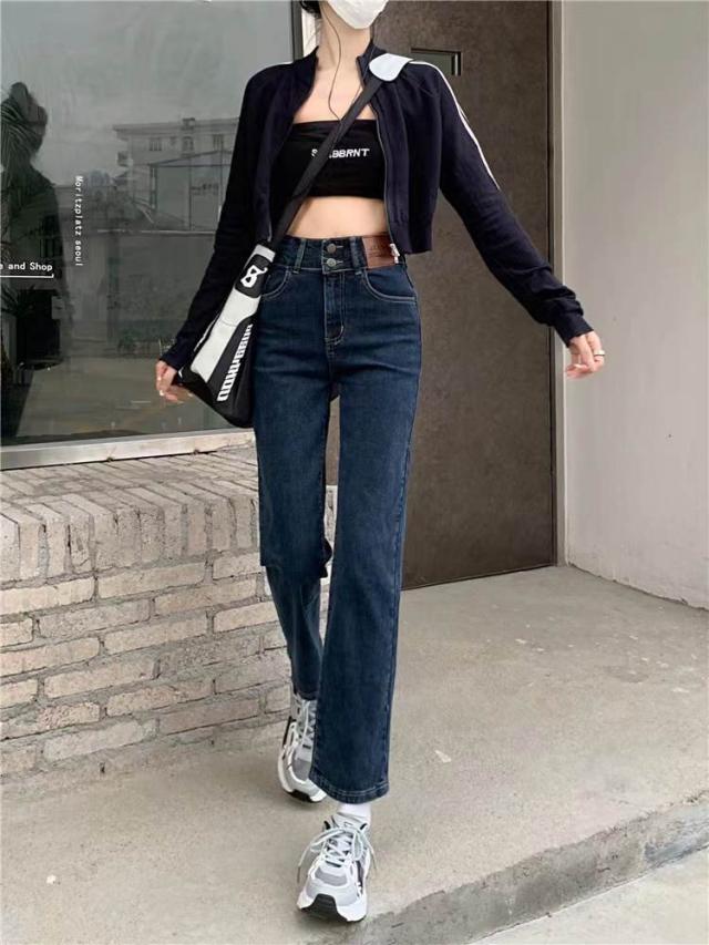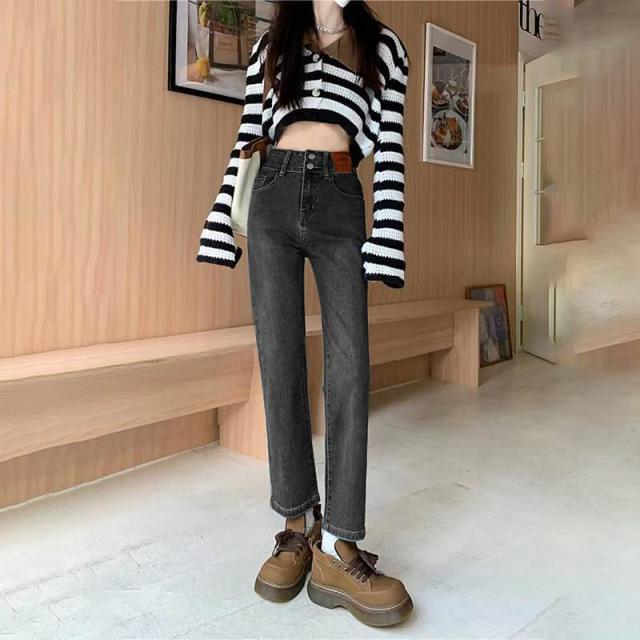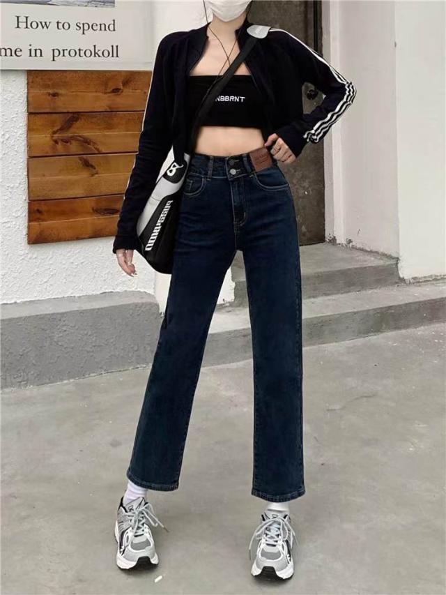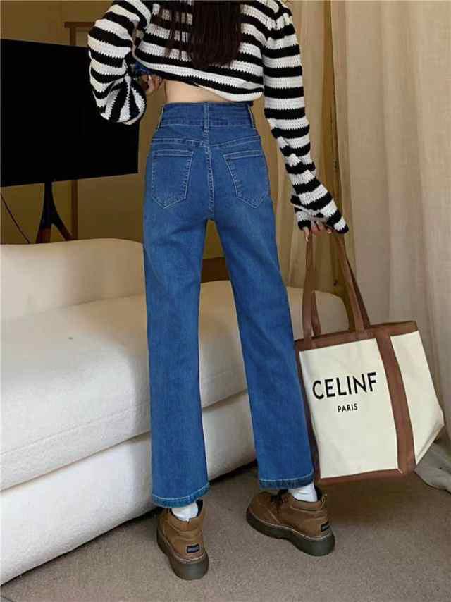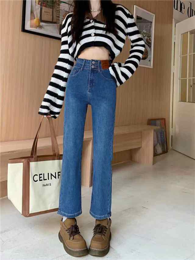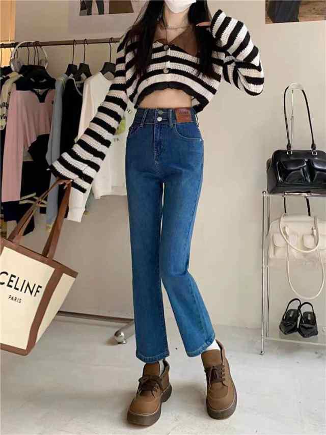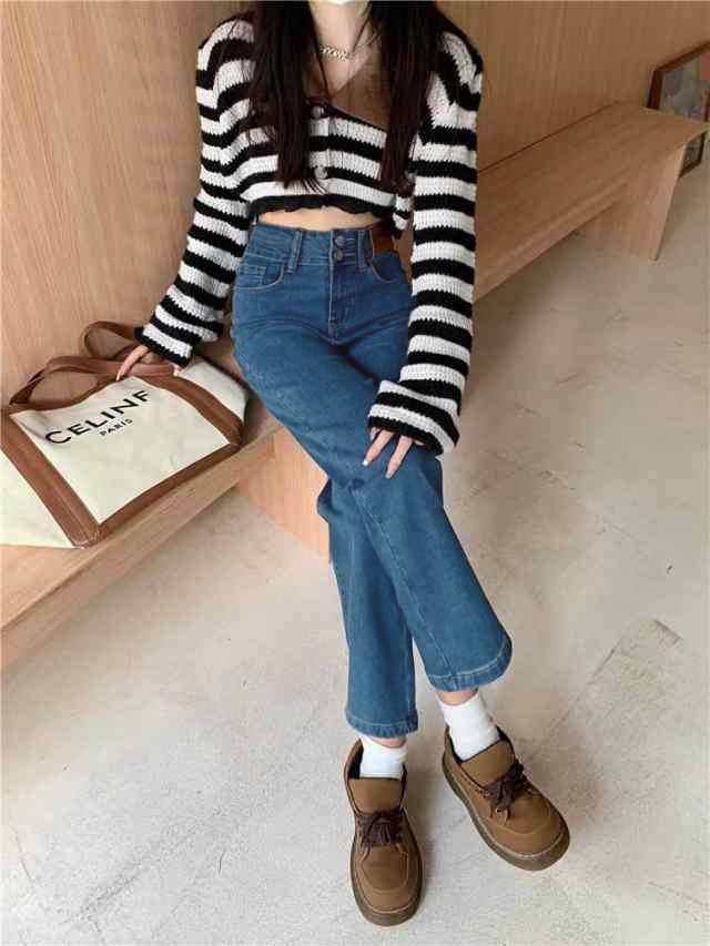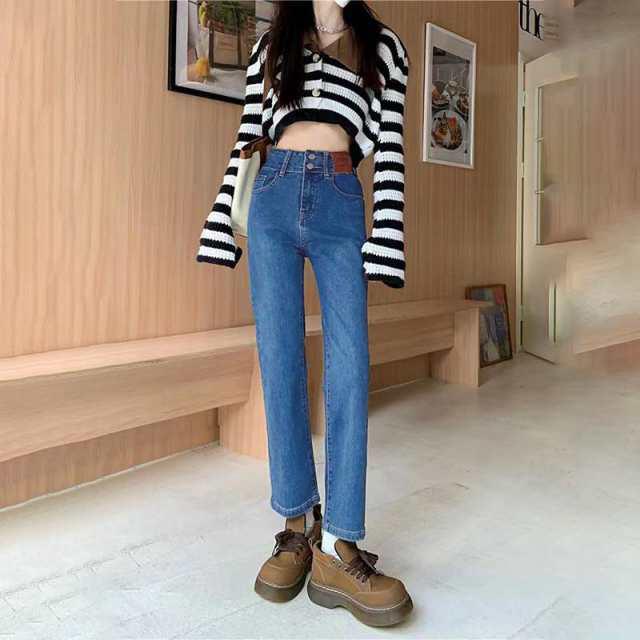 デニム ストレートパンツ 低身長 レディース ジーンズ ロップド丈 ズボン 九分丈 美脚 ボトムス カジュアル 韓国 おしゃれ