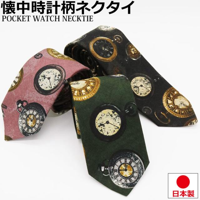 懐中時計 ネクタイ 日本製 6cm幅 細め ナロータイ 紳士 メンズ レディース 成人式 ユニフォーム スリムタイ