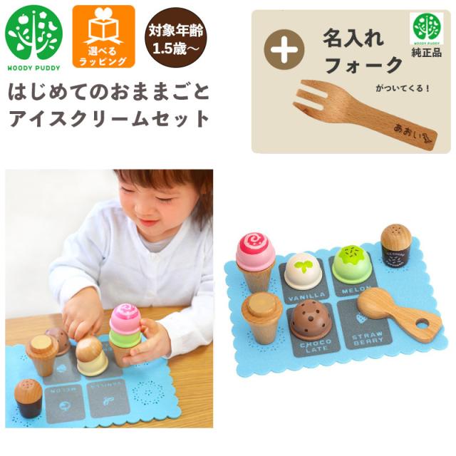【名入れ無料 フォーク付き】 はじめてのおままごと アイスクリームセット G05-1170 ウッディプッディ 木のおままごと 木製 食材 マグネット 出産祝い おもちゃ ままごと おままごと キッチン 知育玩具 子供 プレゼント ギフト