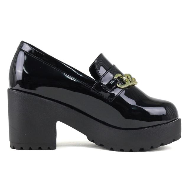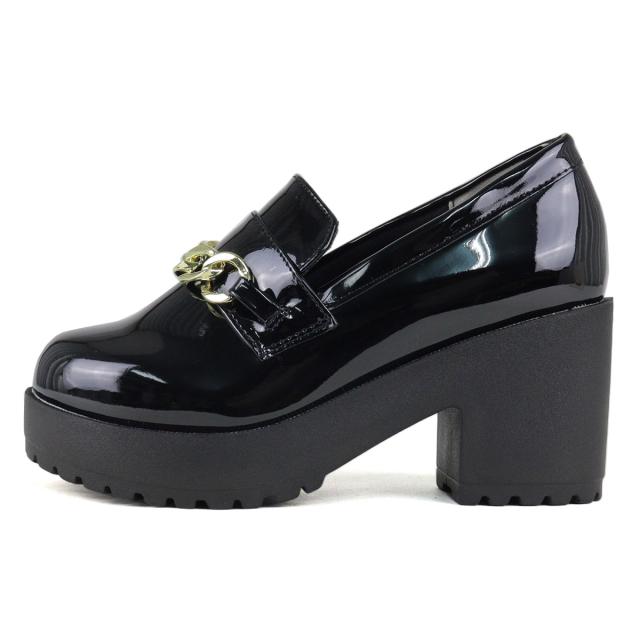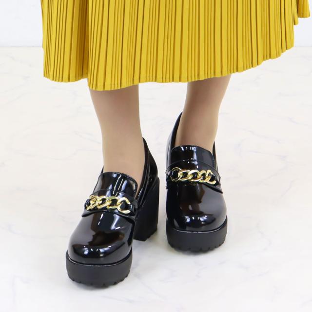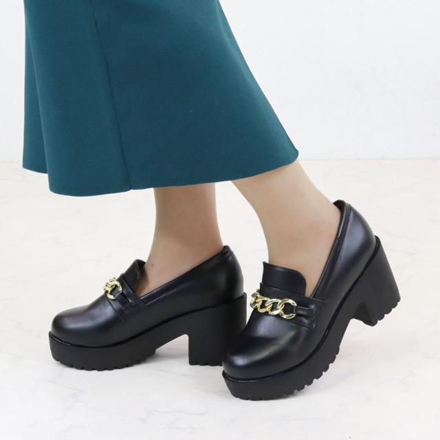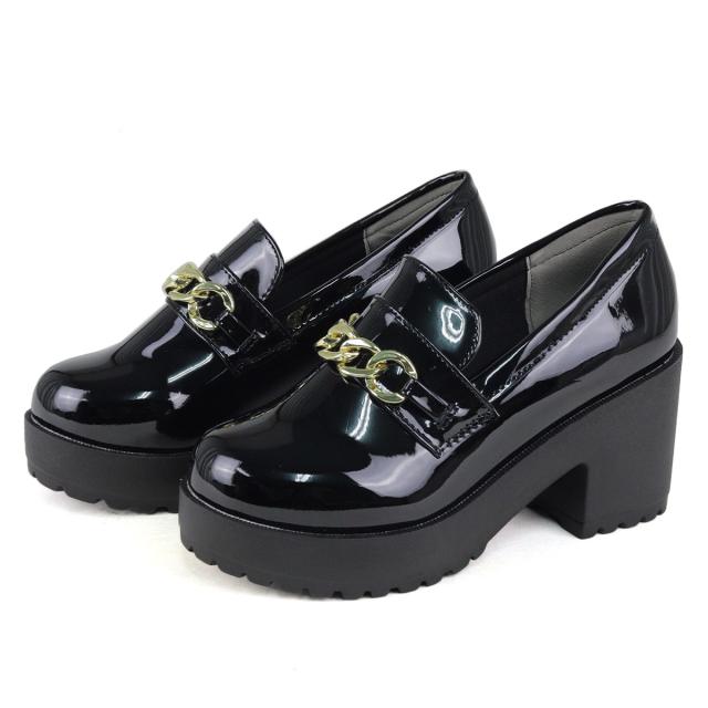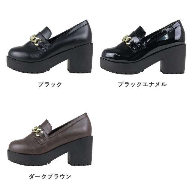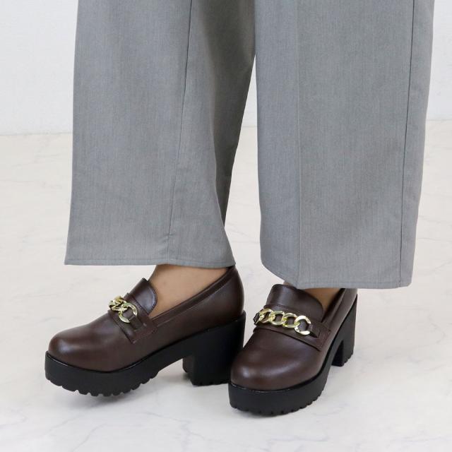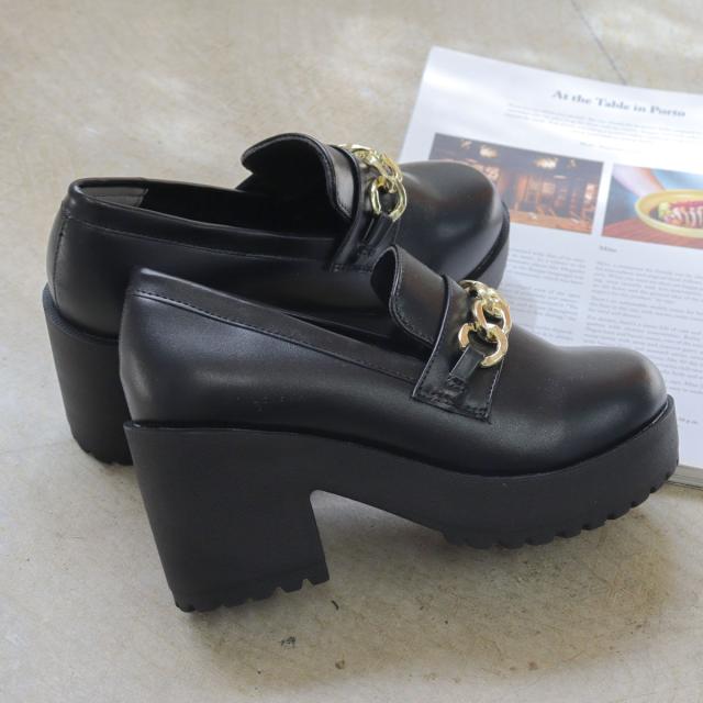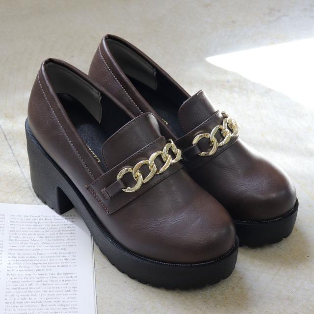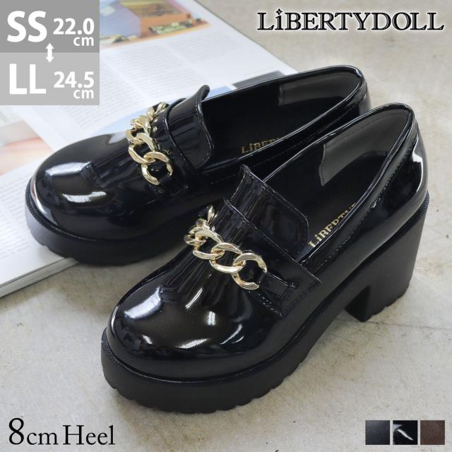 ビットローファー ゴールドチェーン レディース 8.0cmヒール 厚底 No.3058 22.0-24.5cm 黒 茶 LiBERTYDOLL リバティードール