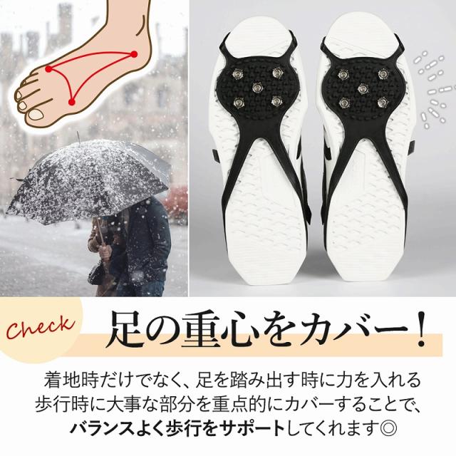 | 商品の説明 | いつもの靴につけるだけ! わざわざ専用の靴を新しく買わなくてもいつも履きなれた靴につけるだけ。 履き心地はそのままに、安全性をプラス出来ちゃいます。 安全設計5本のスパイク付! 強力な爪がたくさんついた凍結面にしっかりグリップする 5つの強力スパイクが滑りを防止。 着地時だけでなく、足を踏み出す時に力を入れる 歩行時に大事な部分を重点的に カバーすることで、バランスよく歩行をサポートしてくれます◎ スニーカーやヒールのある靴でも大丈夫。 引っ張ると伸びる素材なので、通勤通学時にさっと装着も! 使わないときはコンパクト! 持ち歩く際もじゃまにならない、軽量コンパクトが魅力。 欲しい時にさっと出して使えるから使いやすくて優秀アイテムです。 |