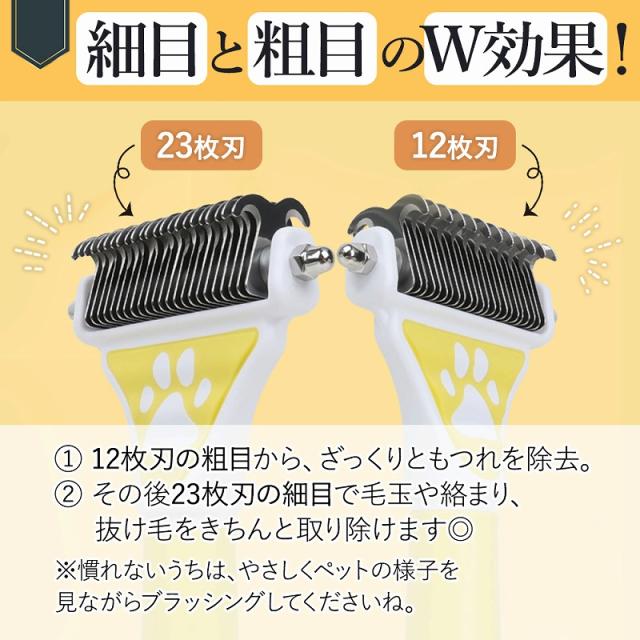 その後23枚刃の細目で毛玉や絡まり、抜け毛をきちんと取り除けます◎