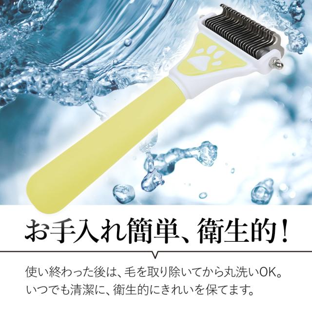 | 商品の説明 | ブラシでなでるだけで、抜け毛や巻き毛をきれいに処理できちゃう優れもの。 12枚刃の粗目から、ざっくりともつれを除去。 その後23枚刃の細目で毛玉や絡まり、抜け毛をきちんと取り除けます◎ ※慣れないうちは、やさしくペットの様子を見ながらブラッシングしてくださいね。 ペットのお肌に傷をつけないよう、直接触れる部分は素手でも安全な素材。 リラックスしたまま、マッサージもできます。 幅広サイズだから、広範囲にも。 小型犬から大型犬まで幅広く対応できる嬉しいサイズ。 足やおなかなど、細かなところもしっかりブラッシングできます◎ お手入れ簡単、衛生的! 使い終わった後は、毛を取り除いてから丸洗いOK。 いつでも清潔に、衛生的にきれいを保てます。 普段のお手入れにも、換毛期にも。 グリップが握りやすいので、時間短縮しながらしっかりとお世話が出来ちゃいます◎ |