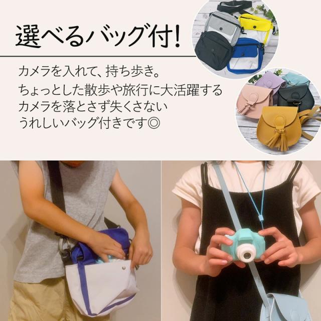 ちょっとした散歩や旅行に大活躍するカメラを落とさず失くさないうれしいバッグ付きです。