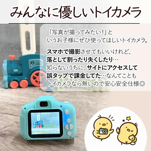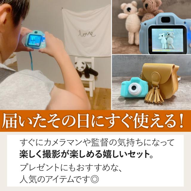 | 商品の説明 | 「写真が撮ってみたい!」というお子様にぜひ使ってほしいトイカメラ。 スマホで撮影させてもいいけれど、落として割ったりなくしたり…。 知らないうちに、サイトにアクセスして誤タップで課金してた…なんてこともないので安心安全仕様◎ 動画撮影やゲーム機能、タイマー機能などなどうれしい機能付き。 ちょっとした散歩や旅行に大活躍するカメラを落とさず失くさないうれしいバッグ付きです。 |
