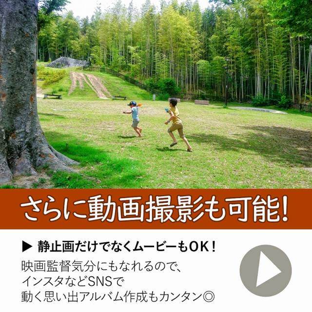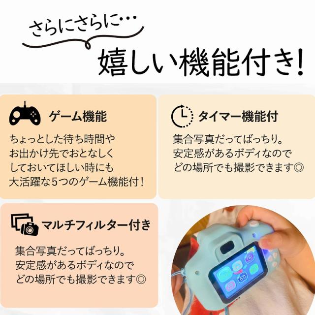動画撮影やゲーム機能、タイマー機能などなどうれしい機能付き。