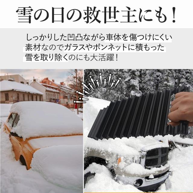 しっかりした凹凸ながら、車体を傷つけにくい素材なのでガラスやボンネットに積もった雪を取り除くのにも大活躍。