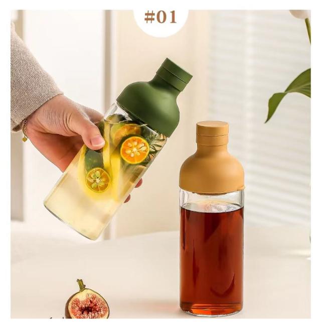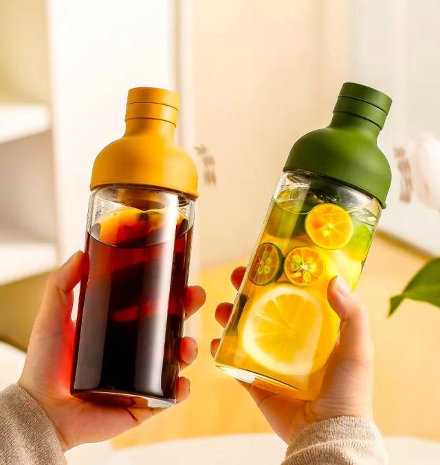 冷水筒 フィルターインボトル 水出し茶 ボトル 横置き 450ml 耐熱 ガラス コップ 水出し 茶こし フィルター付き 麦茶ポット おしゃれ