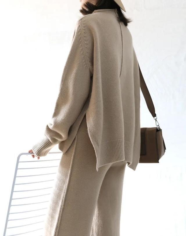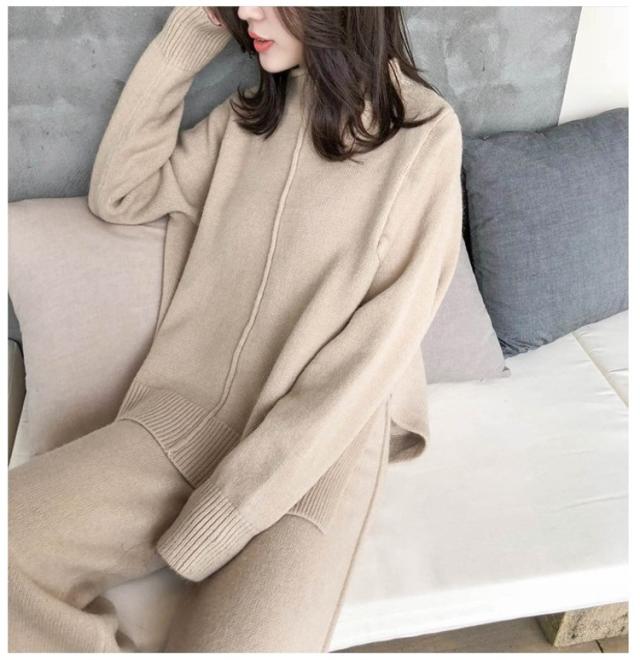 パンツセットアップ レディース リブニットセットアップ セットアップ ニット 2点セット 秋 冬 上下セット ニットパンツ ニットセーター ガウチョパンツ ワイドパンツ 無地 ゆったり