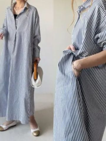 シャツワンピース シャツ ワンピース レディース ロングワンピース 長袖 前開き 体型カバー きれいめ ゆったり 秋
