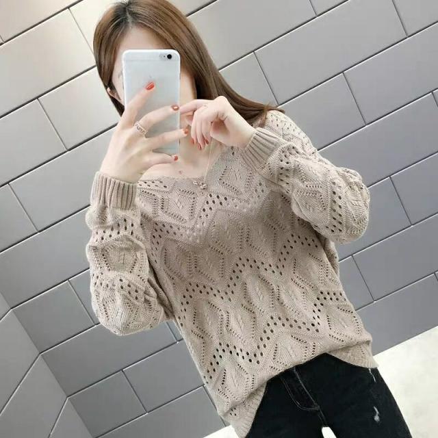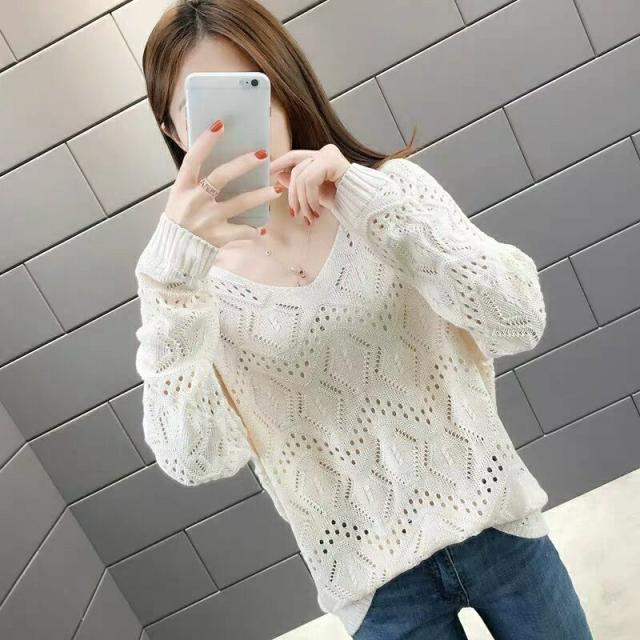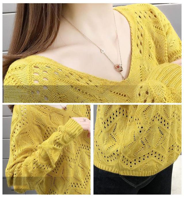 ニット レディース トップス レース セーター プルオーバー チュニック Vネック ハイゲージ 無地 きれいめ 長袖 透け 花柄 ストレッチ