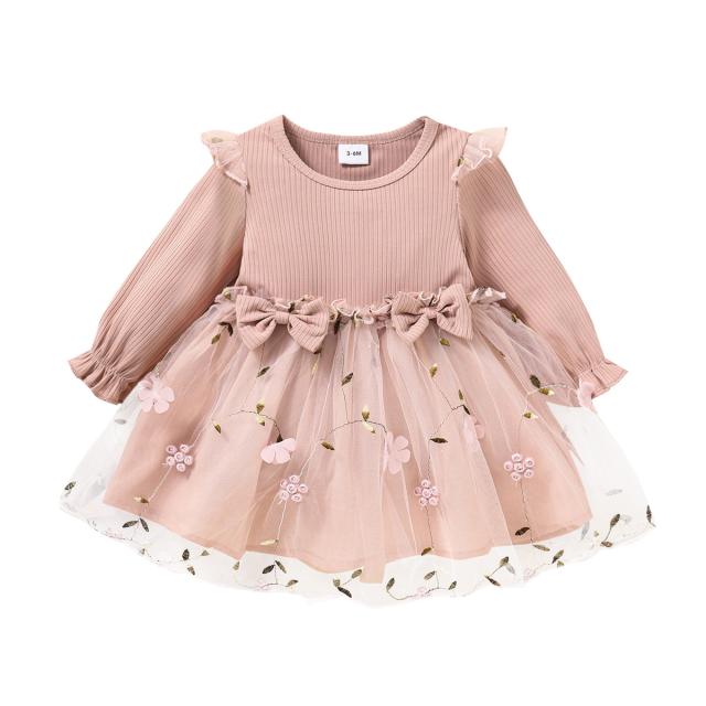 女の子 長袖 ワンピース キッズ チュールスカート 花柄 女児 入園式 七五三 ベビー服 フォーマル 普段着 可愛い 通園 通学 卒業式 発表会 結婚式
