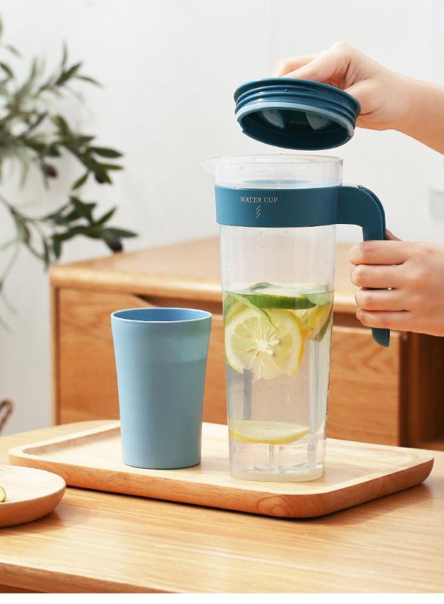 冷水筒 スリムジャグ 1.4L 横置き 縦置き 耐熱 カップ付き 麦茶ポット ピッチャー 水差し 熱湯 白 麦茶 冷水ポット