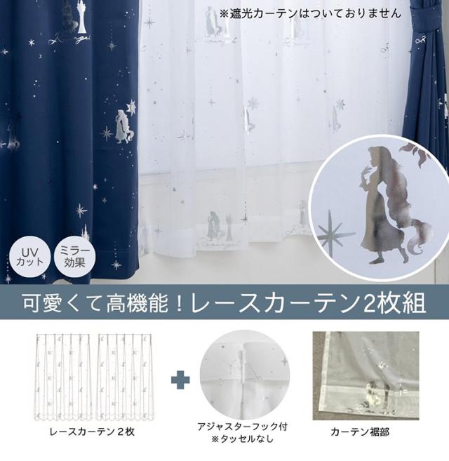 ラプンツェル 幅100cm×丈198cm レース カーテン 2枚セット UVカット率99.9% 外から見えにくい キャラクター ディズニー プリンセス Disney Disney Princess 公式 正規ライセンス品(代引不可)【送料無料】