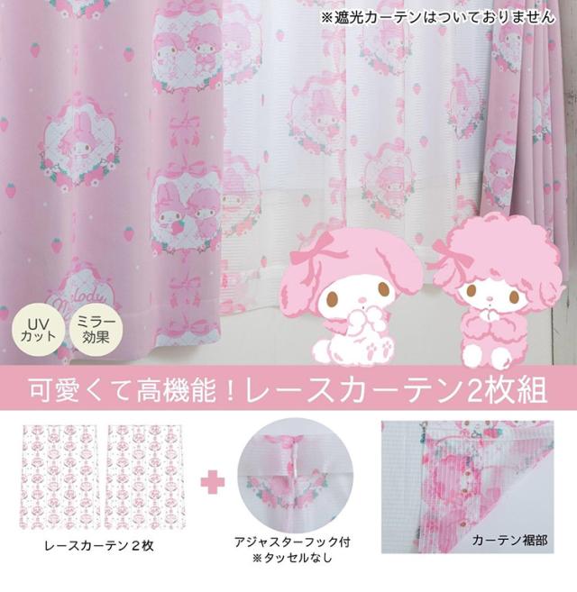 マイメロディ&マイスウィートピアノ 幅100×丈176cm レースカーテン 2枚セット UVカット率99.9% 外から見えにくい キャラクター 正規ライセンス品 公式 かわいい おしゃれ マイメロ サンリオ(代引不可)【送料無料】