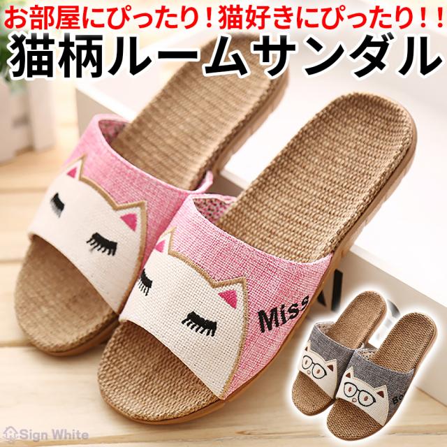 スリッパ 麻素材 かわいい 可愛い 男女兼用 猫 キャット 自宅用 来客用 涼しい おしゃれ 超軽量 レディース メンズ カップル 麻 ベランダ 秋 春 蒸れない 室内 通気 ピンク グレー 送料無料 人気