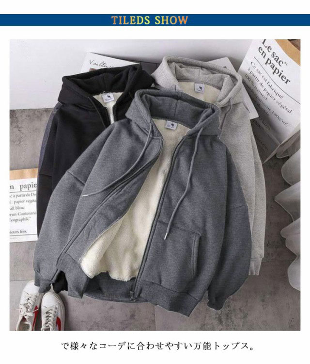ジップアップパーカー レディース パーカー 裏ボア アウター スウェット 裏ボアパーカ あったか 女性 長袖 ロング 秋 冬 秋冬 裏起毛 無地 部屋着 暖かい ルームウェア 防寒 上着 フルジップ ジップパーカー かわいい おしゃれ