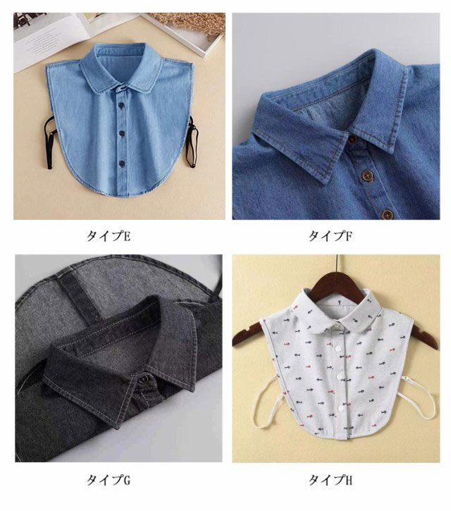 | デニムデザインが可愛いシャツ風つけ襟です。 レイヤードしているかのように見えるシャツ風付け襟 着ぶくれせずにスッキリと重ね着風コーデを楽しめます◎ ニット、トレーナー、スウェット、Tシャツ、ワンピースなどの下に着てトレンドの重ね着スタイル完成 | |