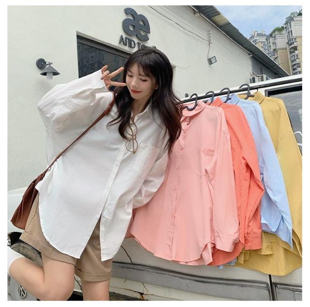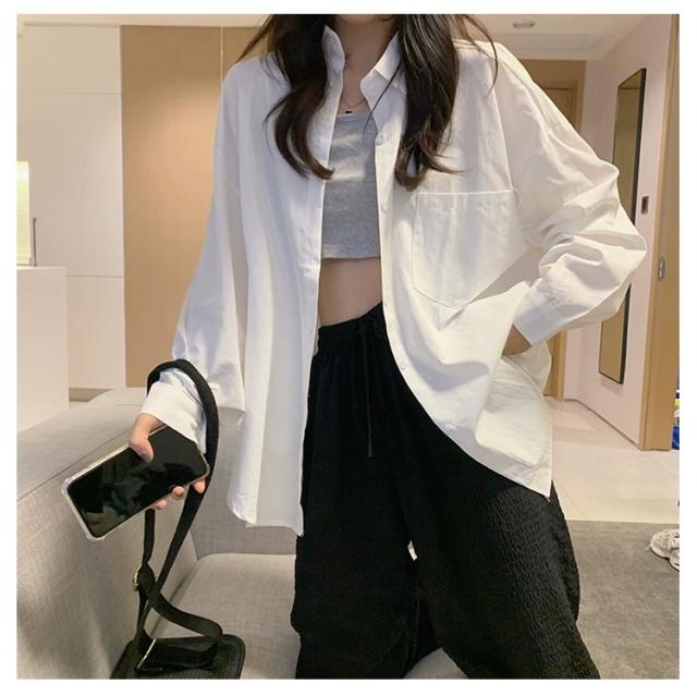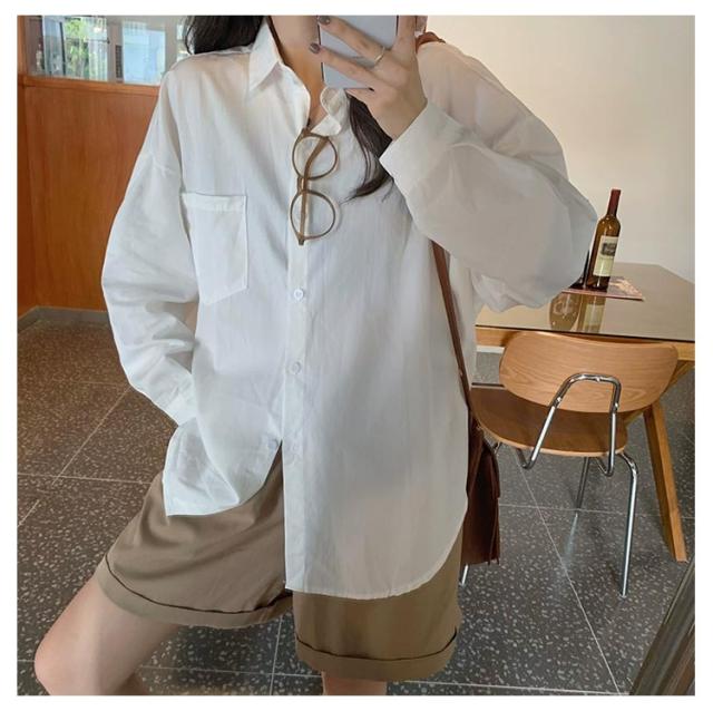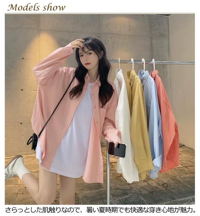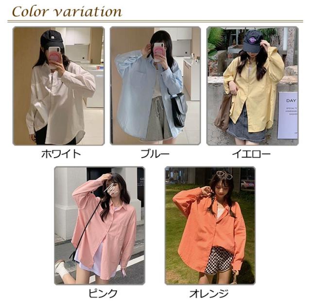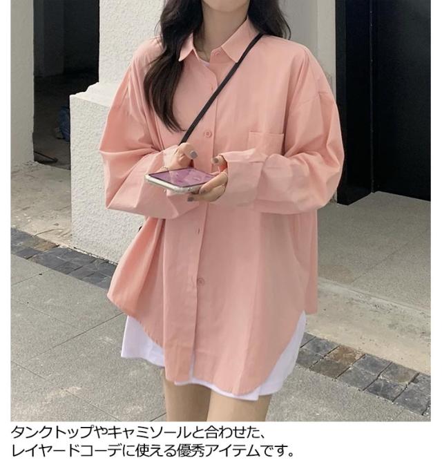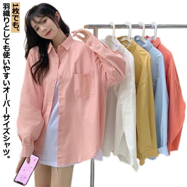 送料無料 シャツ オーバーサイズ レディース ビッグシルエットシャツ トップス チュニック ブラウス 長袖 前開き 羽織 襟付き 無地 ゆったり カジュアルシャツ ロング丈 大きいサイズ 体型カバー シンプル リラックス お洒落 春 秋