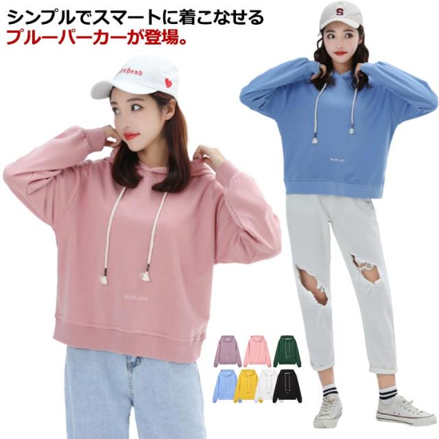 送料無料 スウェットパーカー レディース 長袖 ショート丈 パーカートレーナー プルオーバー フード付き 無地 きれいめ オーバーサイズ ゆったり おしゃれ シンプル カジュアル ルームウェア 部屋着 ユニセックス 大きいサイズ