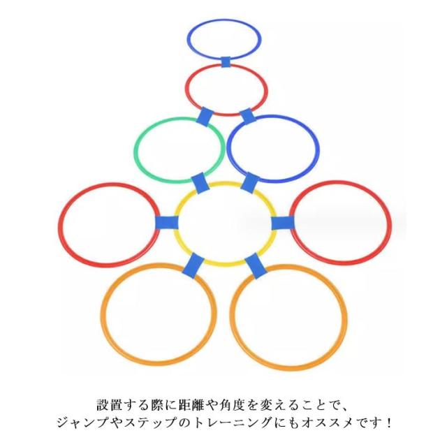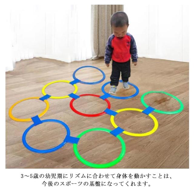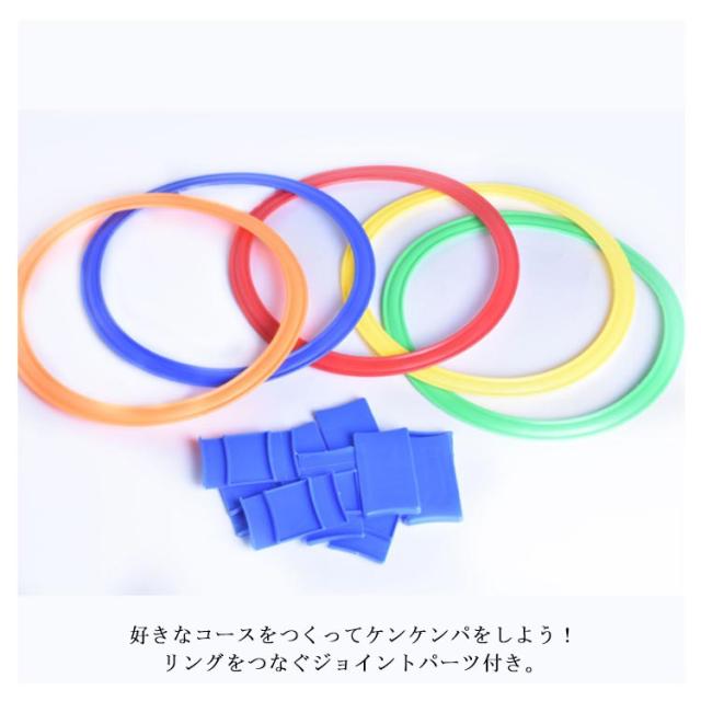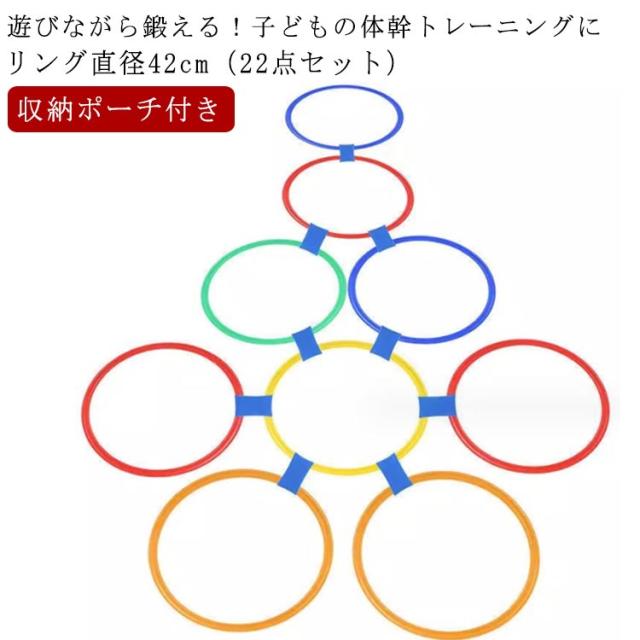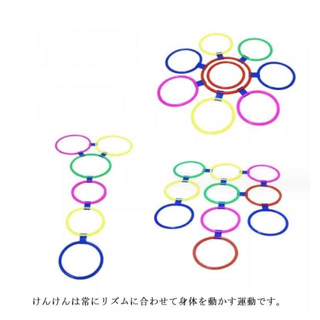 | リング直径42cm(22点セット) 収納ポーチ付き 遊びながら鍛える!子どもの体幹トレーニングに けんけんは常にリズムに合わせて身体を動かす運動です。 3〜5歳の幼児期にリズムに合わせて身体を動かすことは、今後のスポーツの基盤になってくれます。 設置する際に距離や角度を変えることで、ジャンプやステップのトレーニングにもオススメです! 好きなコースをつくってケンケンパをしよう!リングをつなぐジョイントパーツ付き。 たくさん体を動かして遊びの中からバランス感覚を育もう! | |