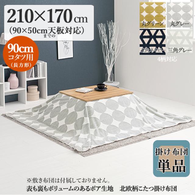 薄掛け こたつ布団 単品 幅210 奥行170cm (長方形) グレー色 丸柄 全6色 裏表2種のボア 中綿なし掛布団 90×50cmこたつ用 SLOW