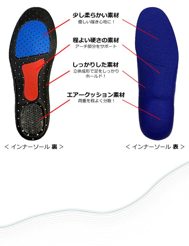 ・疲れにくいインナーソールが標準装備!かかとには加重を優しく支えるエアークッション材を使用