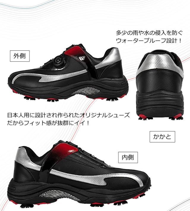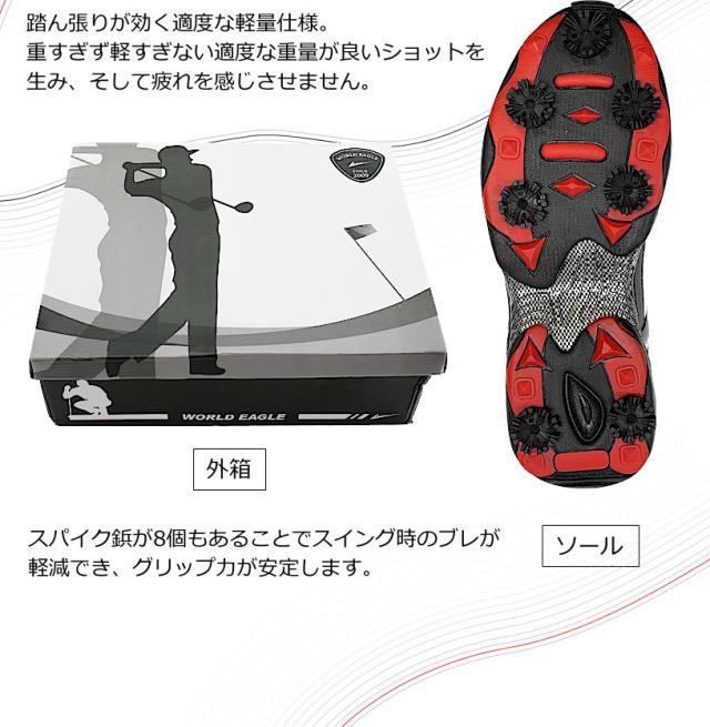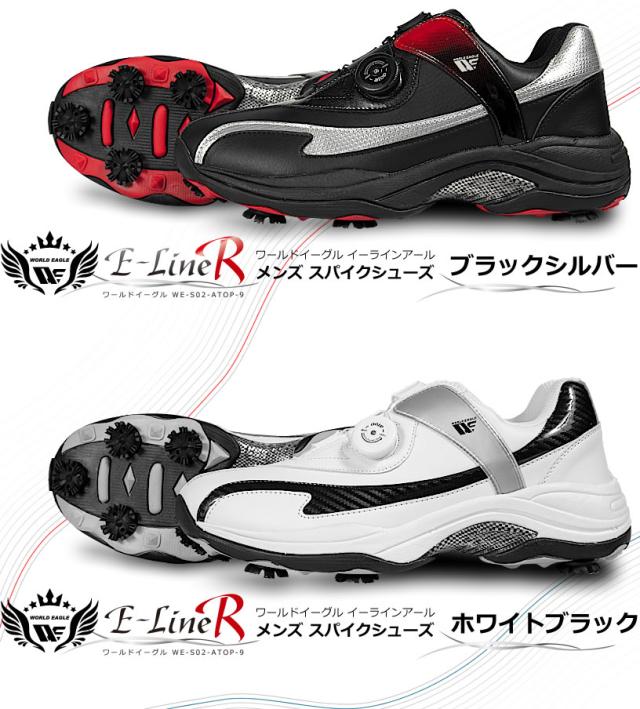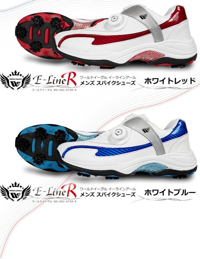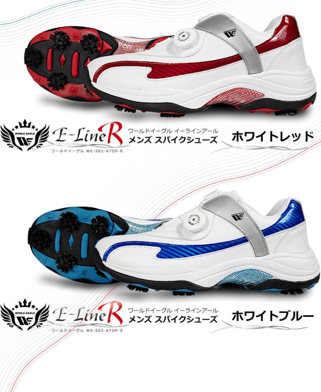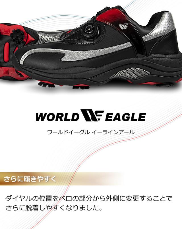 ワールドイーグル ゴルフ メンズ スパイク シューズ E-LINE R ワイドEEEプラス設計 ダイヤル式ワイヤー紐 柔らか設計 歩きやすく疲れにくい 鋲 インナーソール 男性用靴 防水