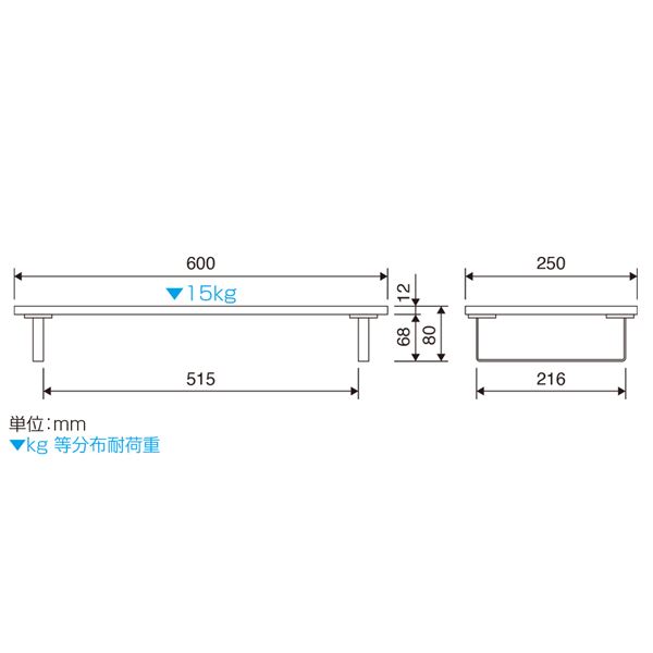 ■ 本体寸法:W600xD250xH80mm