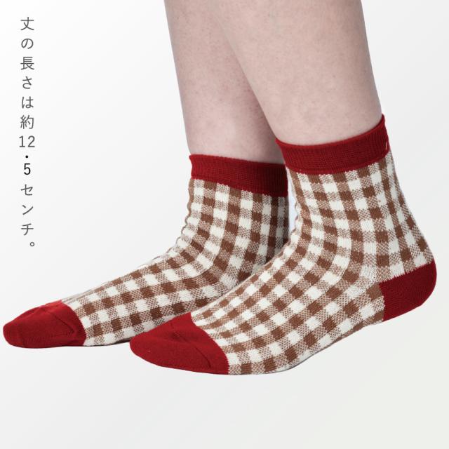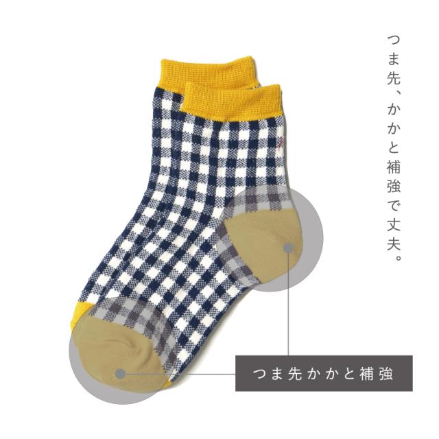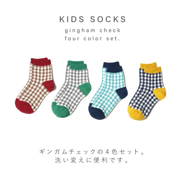 チェック柄がかわいいキッズソックス。ギンガムチェックと3面切替カラーがポイントの4色組ソックス。