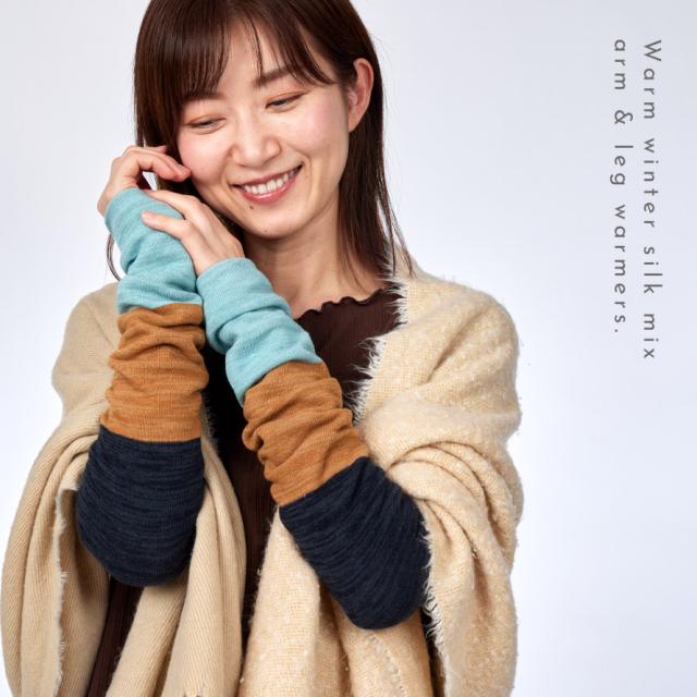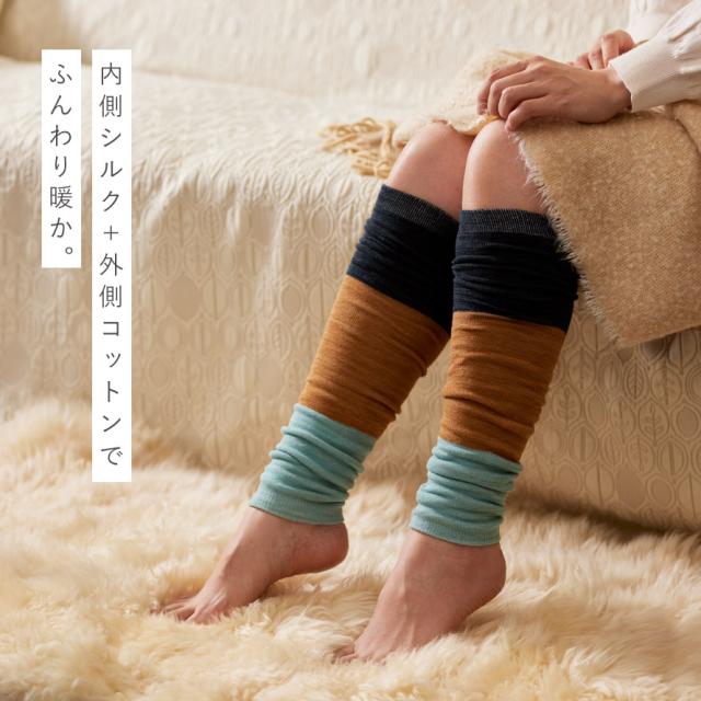 レッグウォーマー シルク コットン レディース おしゃれ 内側シルク外側コットンのアーム&レッグウォーマー