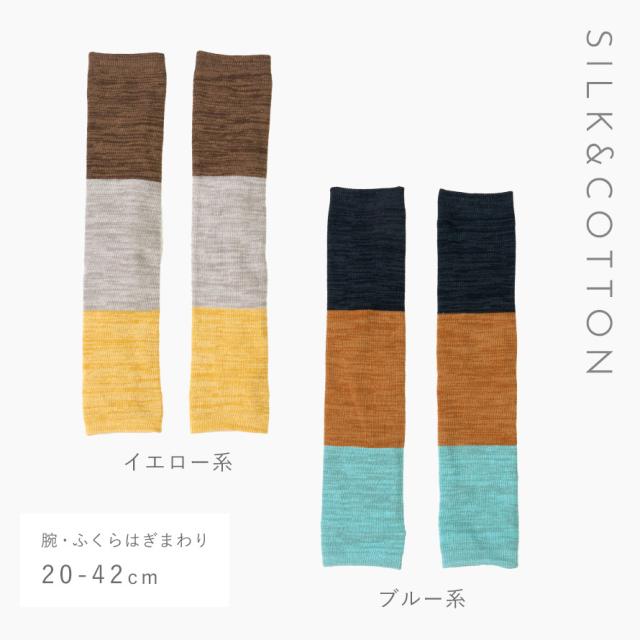 レッグウォーマー,シルク,コットン,レディース,女性,大人,女性用,婦人用,婦人靴下,秋冬,秋,冬,暖かい,ぽかぽか,ポカポカ,暖か,あたたかい,あったか,あったかグッズ,温め,温活,防寒,冷え症,冷え性,対策,グッズ,冷え対策,寒さ対策,冷え取り,冷えとり,防寒グッズ,冷え,おしゃれ,お洒落,オシャレ,ファッション,コーディネート,カジュアル,かわいい,可愛い,切替,イエロー,黄色,ブルー,青,