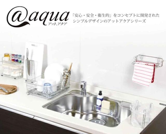 アットアクアは、基本的な機能を一から見直して開発した水廻り用品シリーズです。特にスタッキングにこだわり、多くの人が不満に感じている収納性を追求しました。ザル、ボウルなどの調理用品から水廻り収納まで、それぞれの使用シーンに合わせ、サイズ、形状を豊富に取り揃え、様々なニーズに応えます。