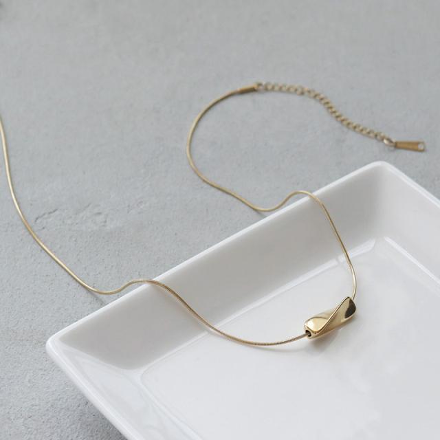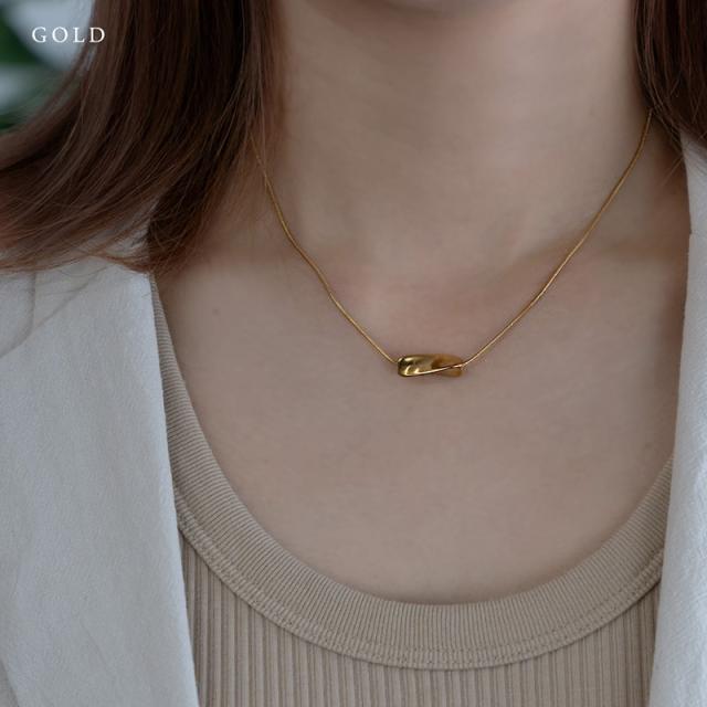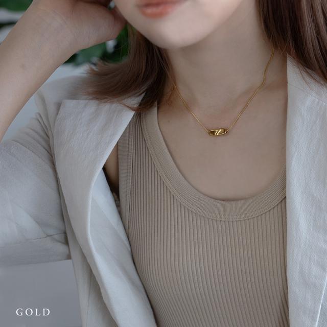 | 水にも強く、金属アレルギーの方でも比較的安心して使えるお肌に優しいサージカルステンレス製のネックレスです。 ひねりを加えたメタルモチーフがポイントになったスタイリッシュなデザイン。 馴染みの良いスネークチェーンと程よい存在感で都会的な印象を与えてくれます。 | |