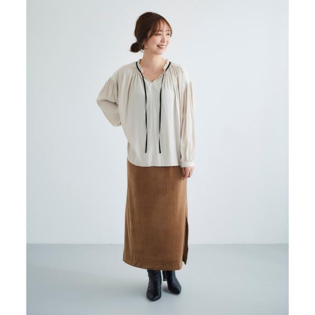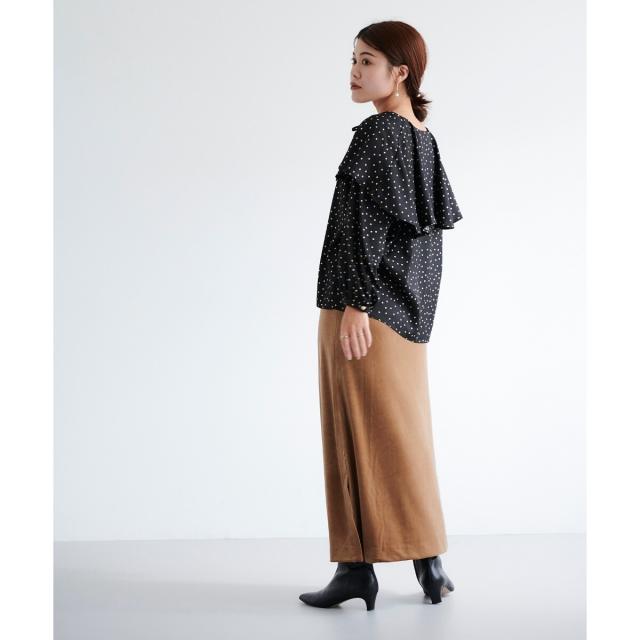 サイドに施したスリットから覗く足元が程よい抜け感に。