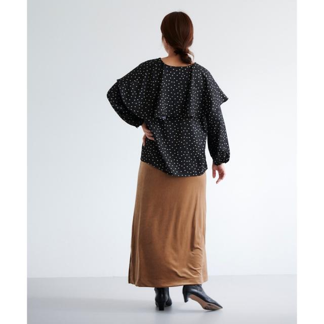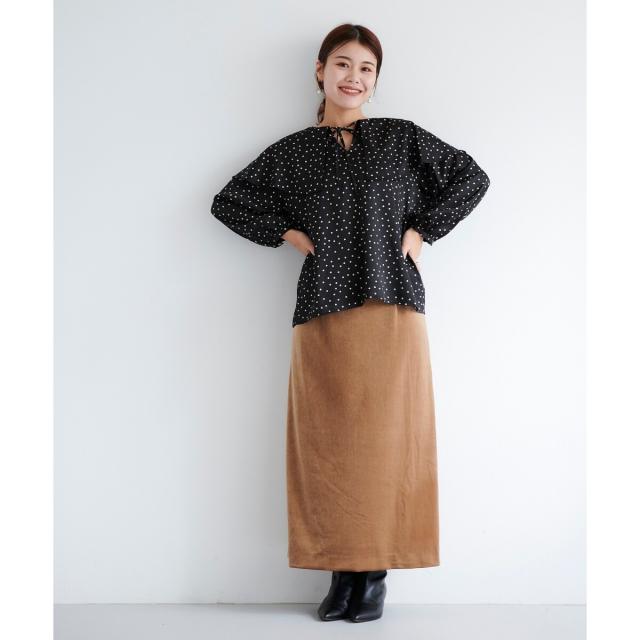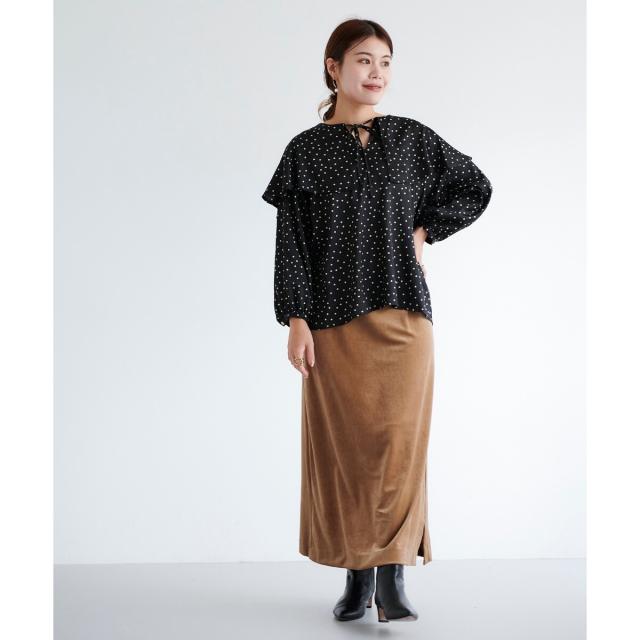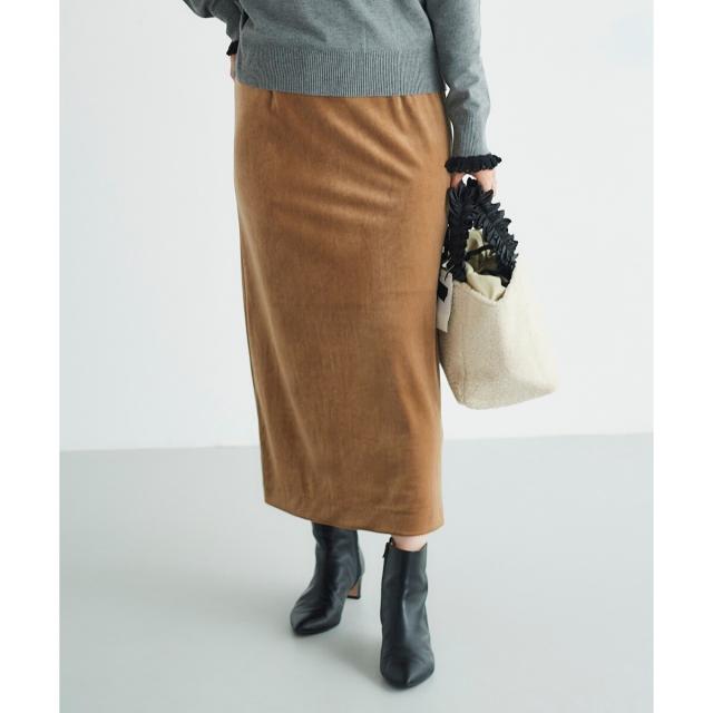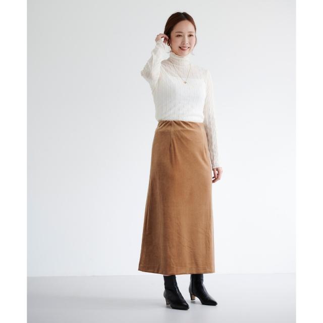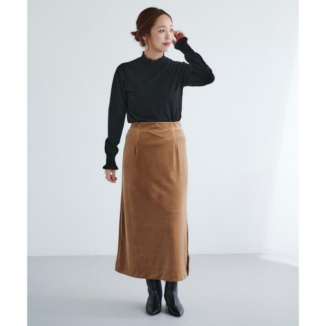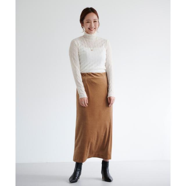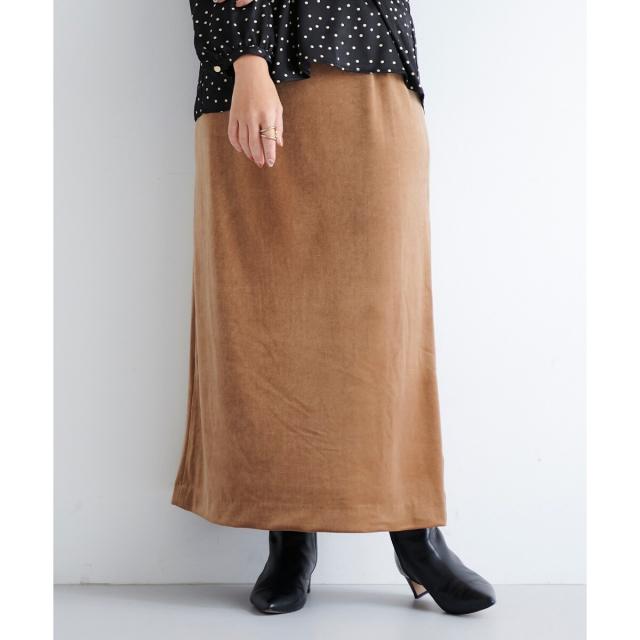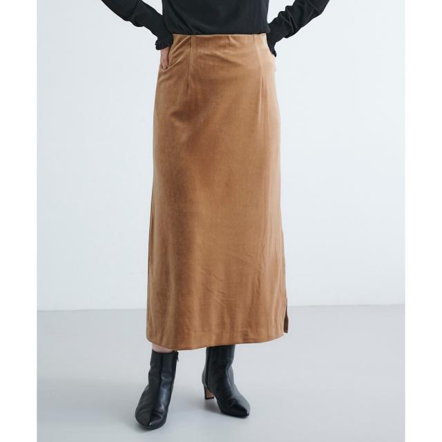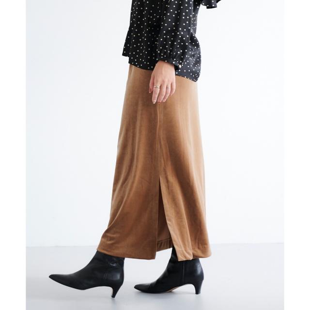今季トレンド素材、注目素材でもあるベロア生地を使用したロングスカート。