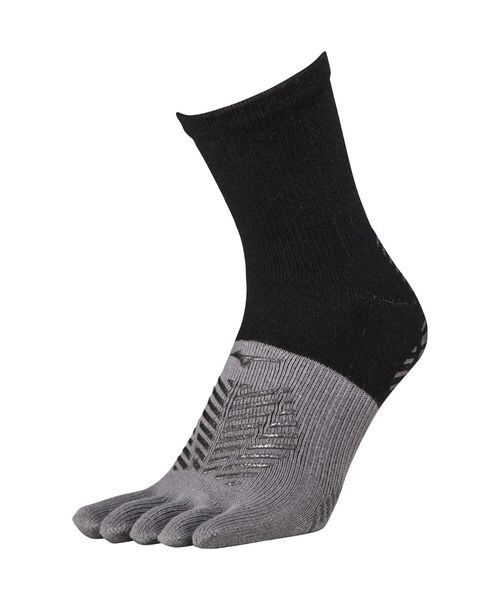 両面にグリップ力を有する5本指ショートソックス。4か所の滑り止めでグリップを高める設計。肌面にはナノフロント糸を使用し、グリップ力向上。