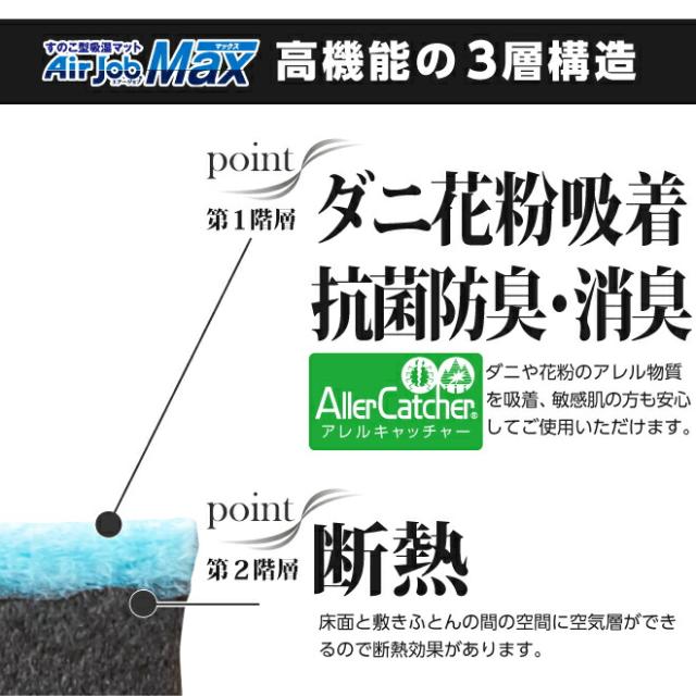 すのこ型除湿マット 吸湿マット エアジョブ マックス Airjob MAX(シングル)TJI-666 アレルキャッチャータイプ 東洋紡 フィルハーモニー 花粉 ダニ 吸着 除湿 吸湿 消臭 断熱 すのこ シングル ふとん マット シングル 消臭 防ダニ 抗菌防臭 辻一 日本製