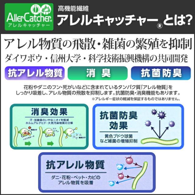 またアレル物質の飛散・雑菌の繁殖を抑制するアレルキャッチャー繊維を使用!